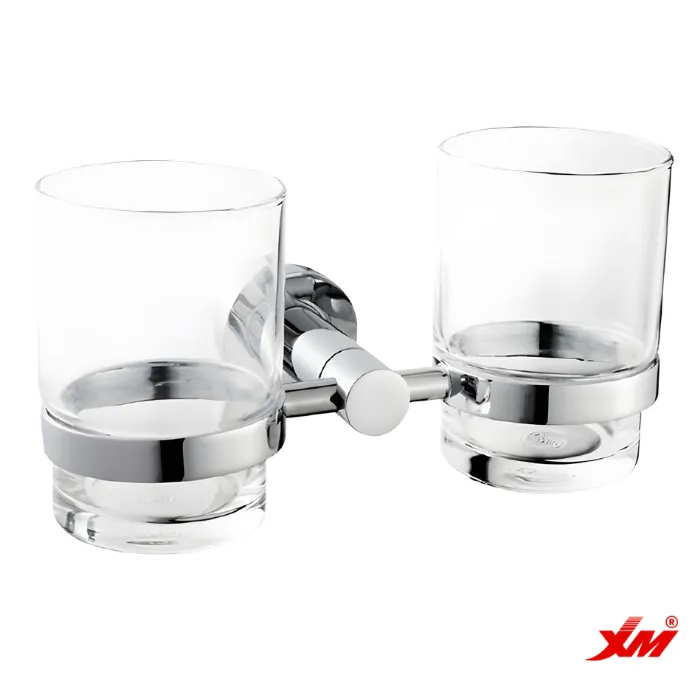 PORTACEPILLO DOBLE VASO DE VIDRIO PARA BAÑO CROMADO ADB6702AC
